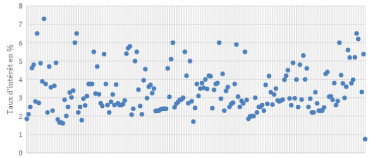 Sur la période allant de février à mars 2020, les taux d’intérêt appliqués varient entre 0,75 % et 7,3 % malgré le contexte de tension sur les marchés financiers.