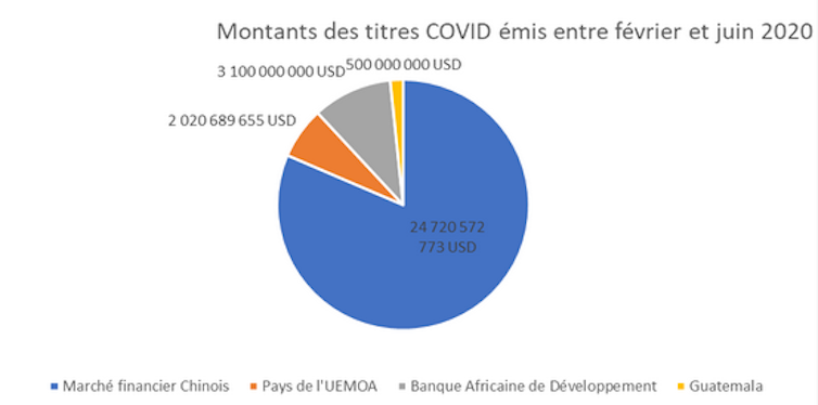 Entre février et mai 2020, les émissions locales de [titres Covid-19] des entreprises et banques chinoises répertoriées sur Cbonds (http://cbonds.com/) ont ainsi atteint l’équivalent de 24 milliards de dollars pour des maturités comprises entre 3 et 18 mois.